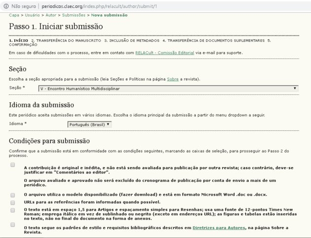 7. Os autores devem se inscrever na seção V-ENCONTRO HUMANÍSTICO MULTIDISCIPLINAR, disponível no sistema no ato da submissão do artigo.